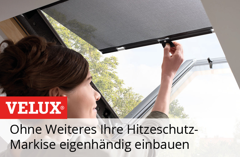 Die Montage ist sehr einfach. VELUX Hitzeschutz Markisen mit Haltekrallen können vom Innenraum aus in nur wenigen Minuten montiert werden. Im Montagevideo von VELUX sind die Einbauschritte gut gezeigt.