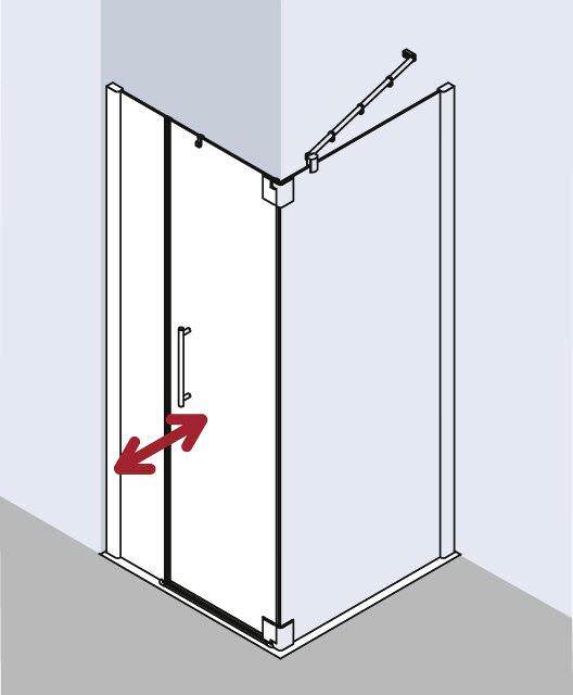 - Zum Einbau in einer Ecke und U-Kabine und zur Kombination anschlagseitig mit Kermi TFR/L Seitenwand.